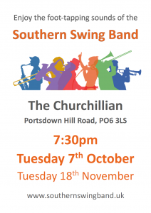 Your next chance to hear us is at the Churchillian in Cosham, at 7:30pm on 7th October 2025.